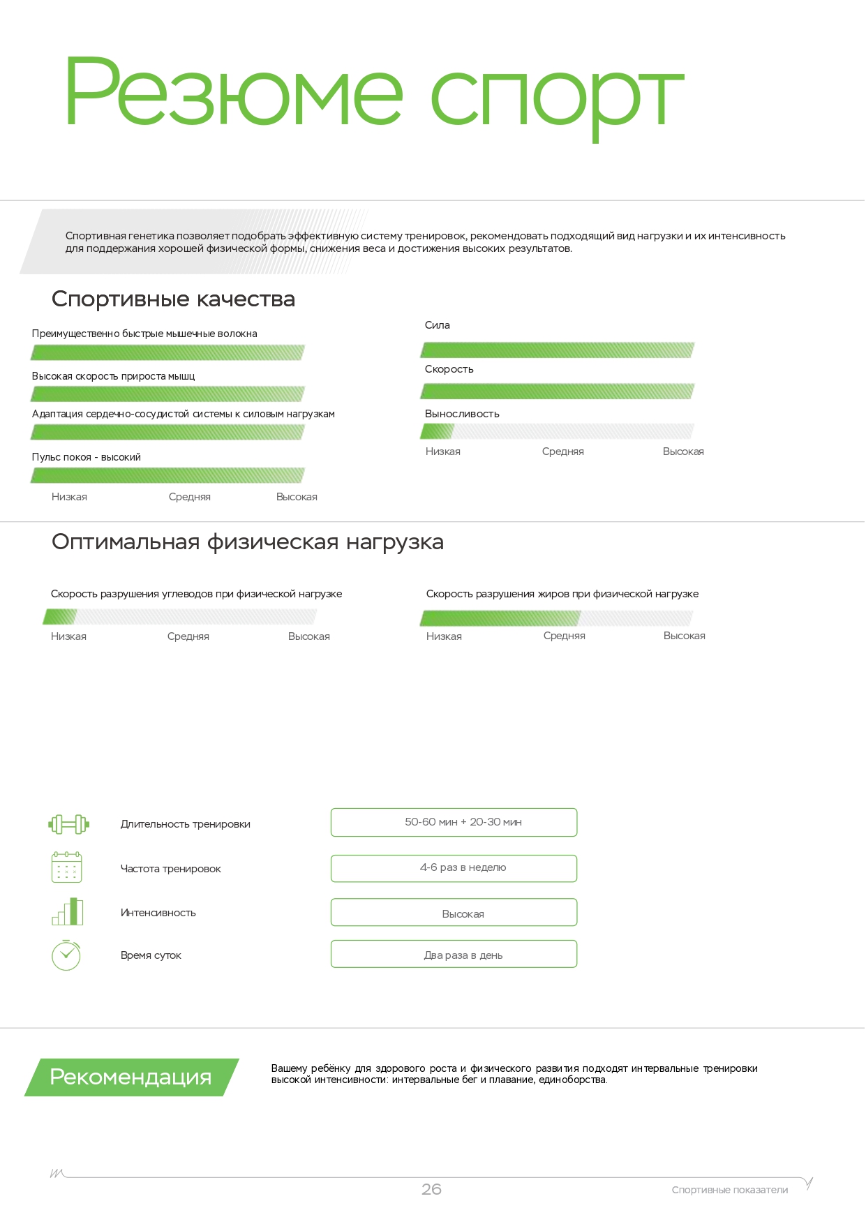 ДНК-тест спорт для детей анализирует такие важные параметры, как: