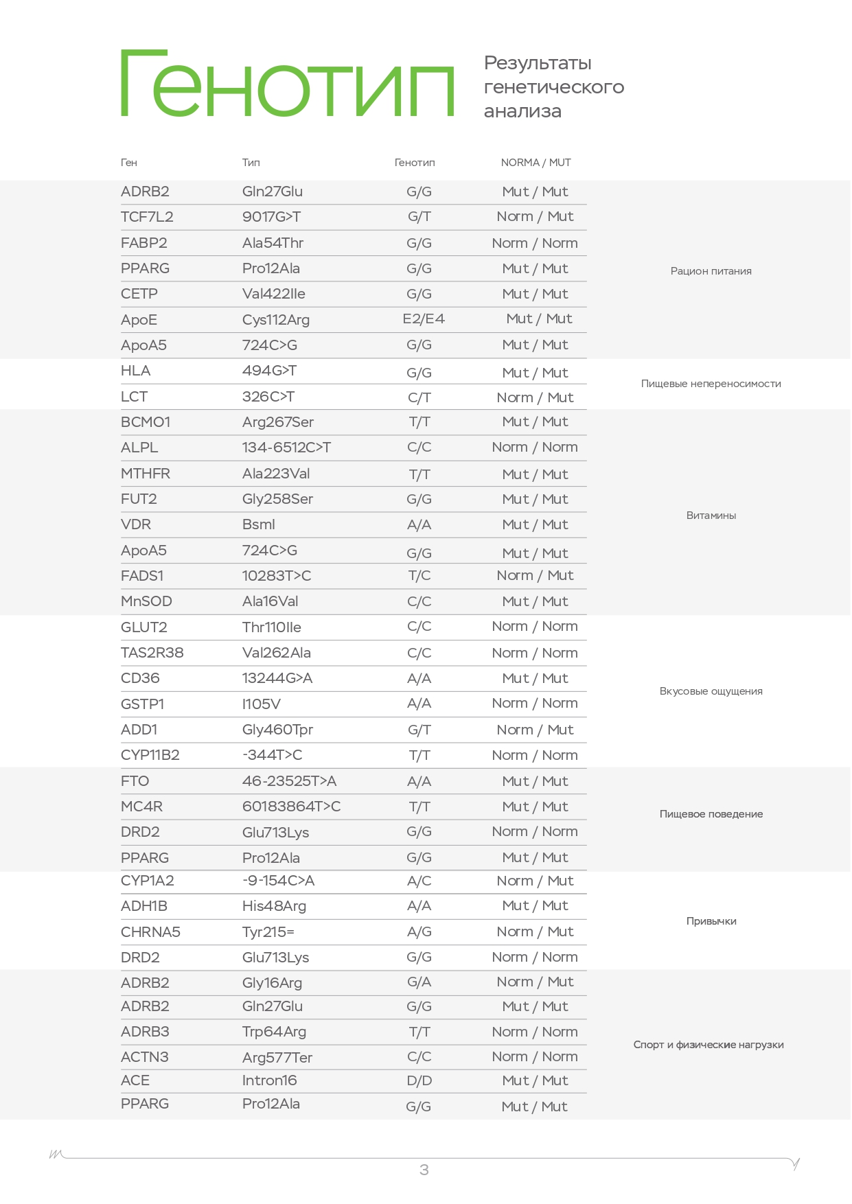 Помните, что помимо физических нагрузок, большую роль играет питание. Вы также можете пройти ДНК-тест на диету, который покажет, каких веществ не хватает в организме, какие организм усваивает лучше, а какие хуже и многое другое.